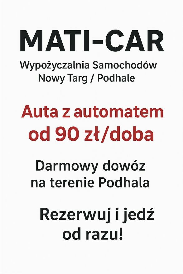 Wypożyczalnia Samochodów – Nowy Targ / PodhaleAuta z automatem od 90 zł/doba